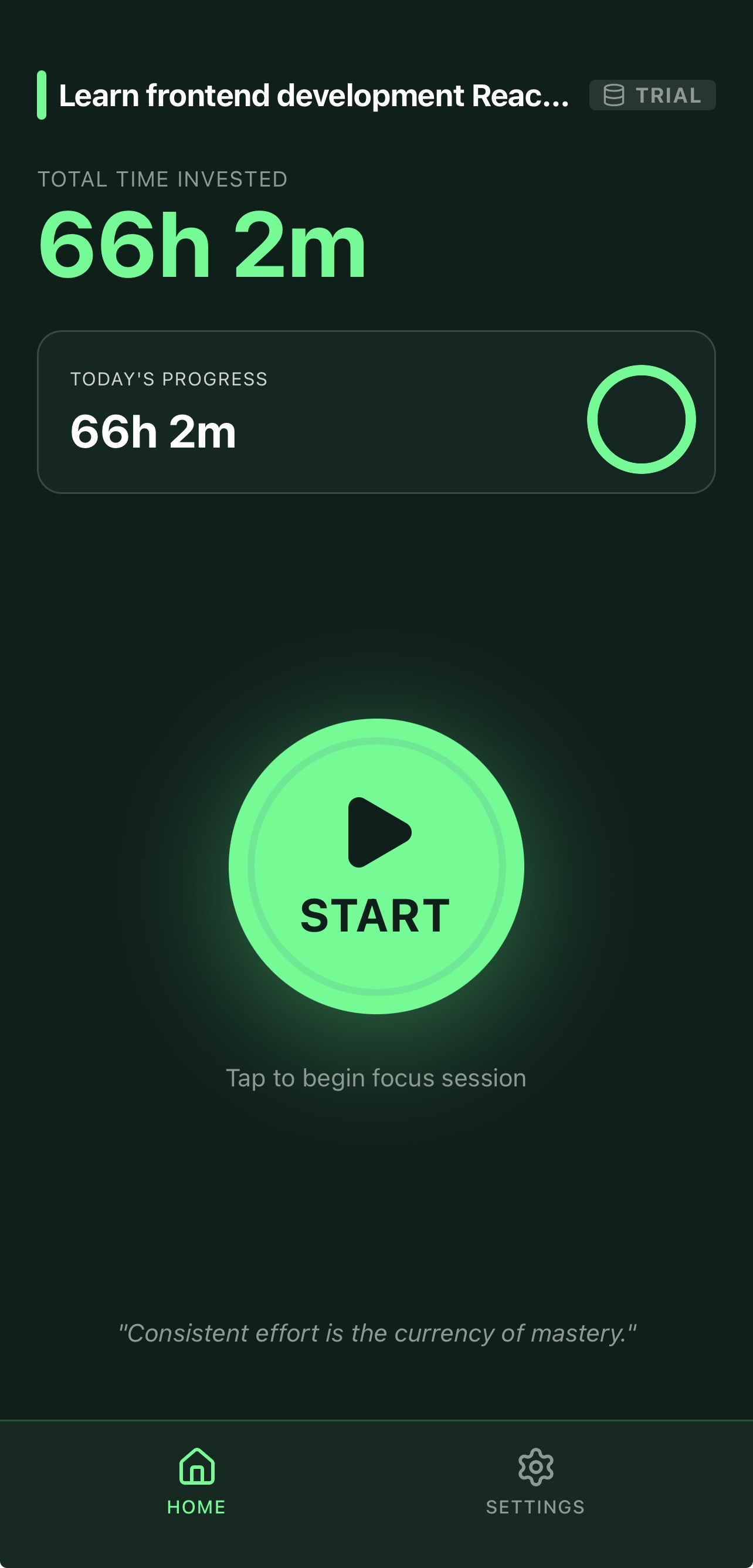 An interface designed to disappear. Once the timer starts, the UI recedes, leaving only you and your work.